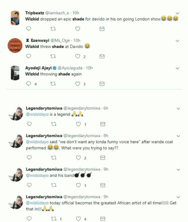 Social media Post comments from those in attendance at the concert revealed Wizkid dropped an epic shade for Davido.