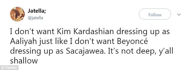 The 37-year-old reality television star received heavy backlash online after posting images of her costume as the black recording artist who died in a plane crash when she was only 22 years old.